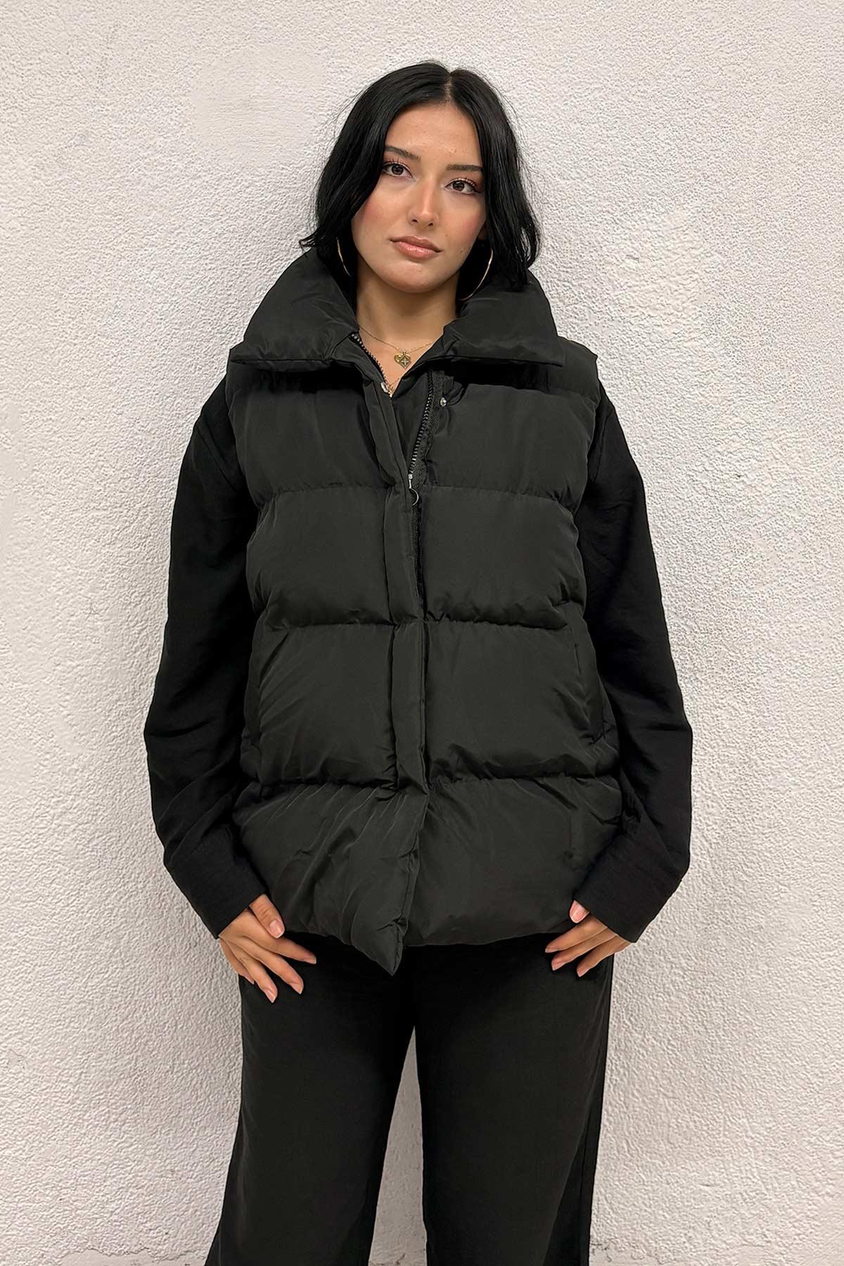 Taba Astarlı Siyah Şişme Yelek (9001)
